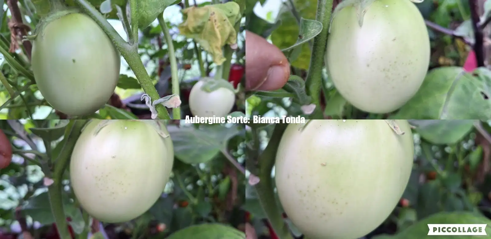 Aubergine Sorte: Bianca Tonda Die Aubergine Bianca Tonda (runde weiße) ist eine alte traditionelle sowie samenfeste Auberginensorte aus Sizilien. Die Früchte sind zart. Neben der glatten ründlichen Version kann es auch zu gerippten Früchten kommen Eine alte italienische Sorte. Wuchshöhe um 50cm. Befruchten sich selbst. wie alle Auberginensorten. Auberginen, ideal zum Braten, Grillen, Einlegen oder für Currys – ein vielseitiges mediterranes Gemüse. Aussaat und Vorkultur/ab Februar Keinmdauer, 15-20 Tage Keimtemperatur 20–25 °C) für erfolgreiches Gärtnern. Vorkultur in Schalen. Saattiefe 0,5 cm. Später pikieren. Ab Mitte Mai frostfrei auspflanzen. Der Anbau gelingt leicht, ein Folientunnel oder Gewächshaus ist von Vorteil aber nicht unbedingt notwendig. Erntezeit, August bis Oktober