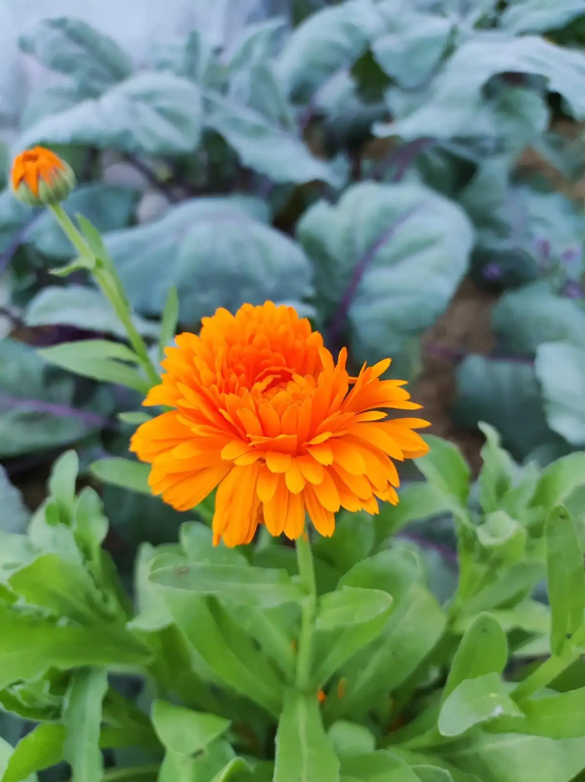Klassische Ringelblume, gelb-orange Blüten, von Juni bis zum ersten Frost, hilft gegen Fadenwürmer. unterstützt das Wachstum von Kartoffeln, Tomaten, Kohl und Bohnen, lockert dazu den Boden auf; abgesehen von der Verwendung in der Kräuter Heilkunde und Kosmetik