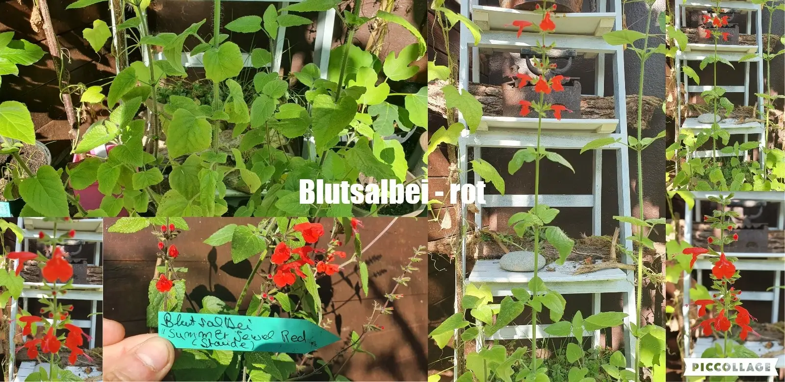Blutsalbei - rot Blütenfarbe: Rot Wuchshöhe: 40 bis 70 cm Blütezeit: Juni bis Oktober Standort: Sonnig Aussaat von Februar bis April Ich bevorzuge sie in Töpfen vor zu ziehen, Samen leicht mit Erde bedecken,Erde feucht halten Normalkeimer