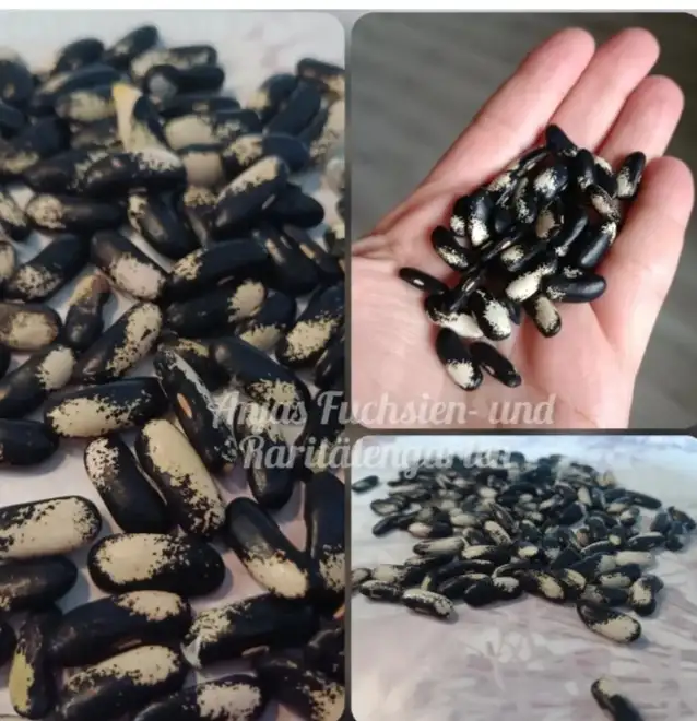Buschbohne 'Elsterbohne' Schwarz/weiße Buschbohne Die 'Elsterbohne' ist eine alte französische Buschbohne, die erstmals um 1900 erwähnt wurde. Junge Schoten können gekocht im Salat, für Butterbohnen oder ähnliches verwendet werden und haben einen feinen Geschmack. Mit zunehmender Reife werden sie dann aber zu fädig und man sollte sie als Kernbohne ausreifen lassen. Diese Sorte dankt es einem, wenn man sie gut gießt, mit einem richtig hohen Ertrag! 10 Korn für 2€ Versand innerhalb von Deutschland möglich. Auch hier erhältlich: www.anjasgarten.de