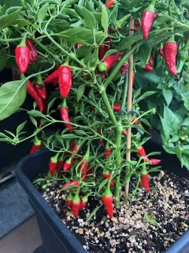 Name: Chili Apache Art: Capsicum annuum Typ: Scharfe Zwerg-/Topfchili 🌱 Pflanze • Wuchsform: kompakt, buschig • Höhe: ca. 40–60 cm • Eignung: ideal für Töpfe, Balkon, Terrasse – sehr robust • Blüte: weiß • Standort: sonnig, warm; gedeiht auch in weniger optimalen Bedingungen gut • Ertrag: sehr hoch, zählt zu den produktivsten Topfchilis 🌶️ Früchte • Farbe: grün → rot bei Reife • Form: schlank, 5–7 cm lang • Geschmack: aromatisch, klar chili-typisch • Schärfe: mittel bis scharf, ca. 70.000–80.000 SHU • Reifezeit: früh bis mittel (70–90 Tage nach Blüte)