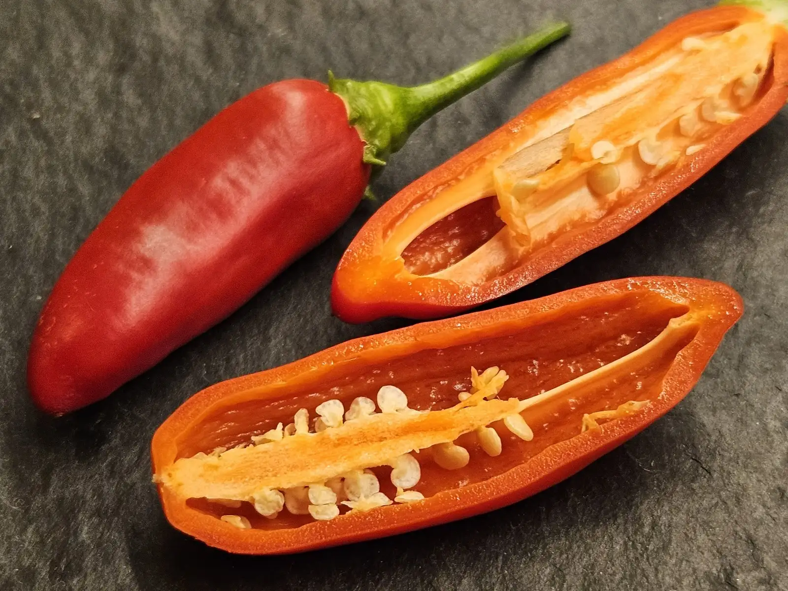 Capsicum baccatum - Herkunft: ? - Schärfe: 0/10 - Frucht: grün->rot, ca.30x80mm - Strauch: Höhe 100cm - Anbau: indoor/semi-hydro/unverhütet