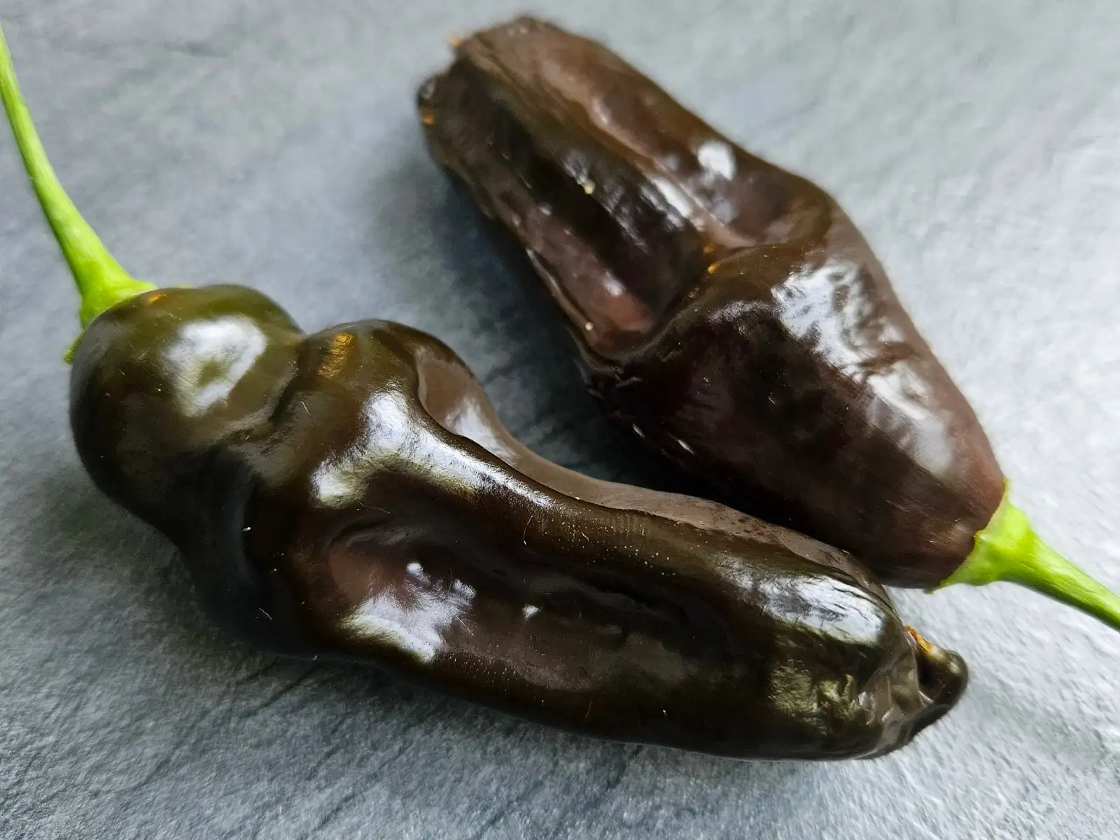Capsicum chinense - Herkunft: Peru - Schärfe: 6-7/10 - Frucht: grün->braun, ca. 25x90mm - Strauch: Höhe 80cm - Anbau: indoor/semi-hydro