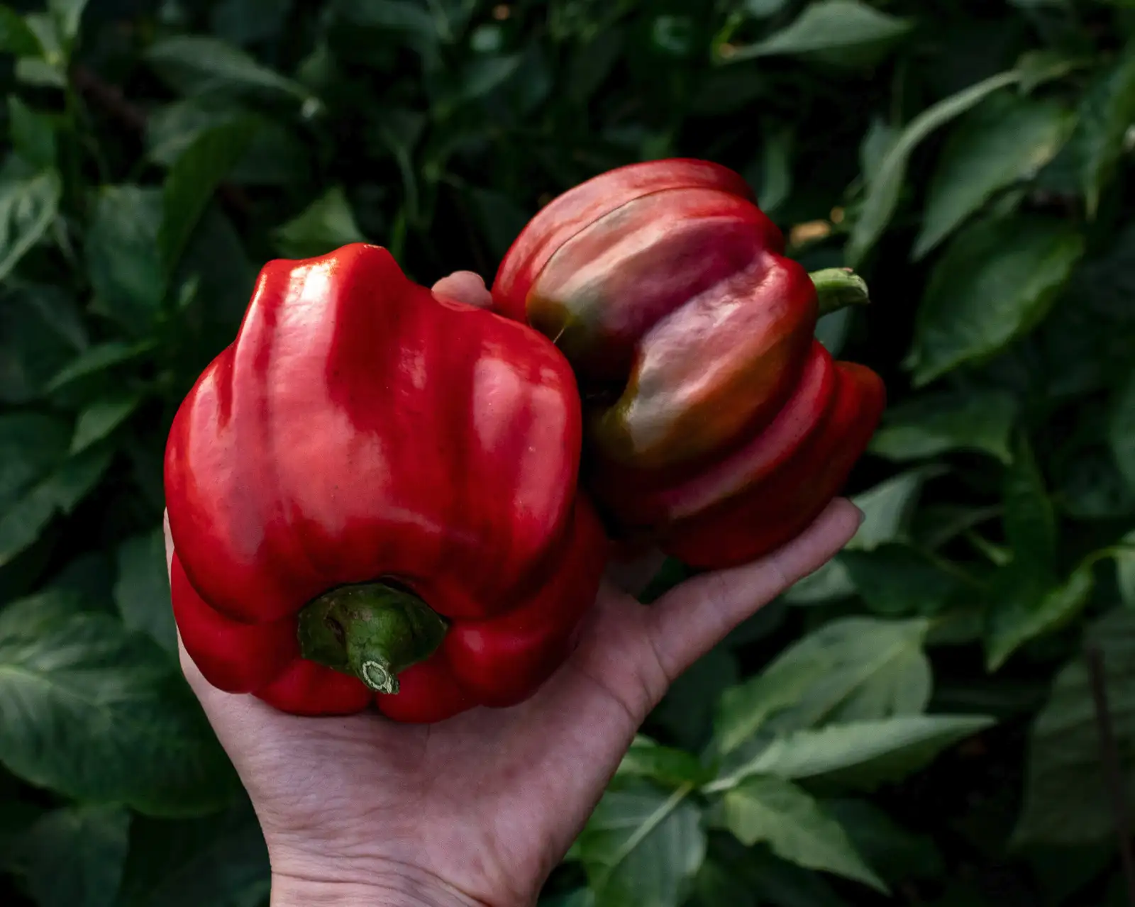 Capsicum Annuum Schöne, grosse Gemüsepaprika. ~50cm, Schärfe 0. Very nice looking bell pepper, ~50cm and no heat.
