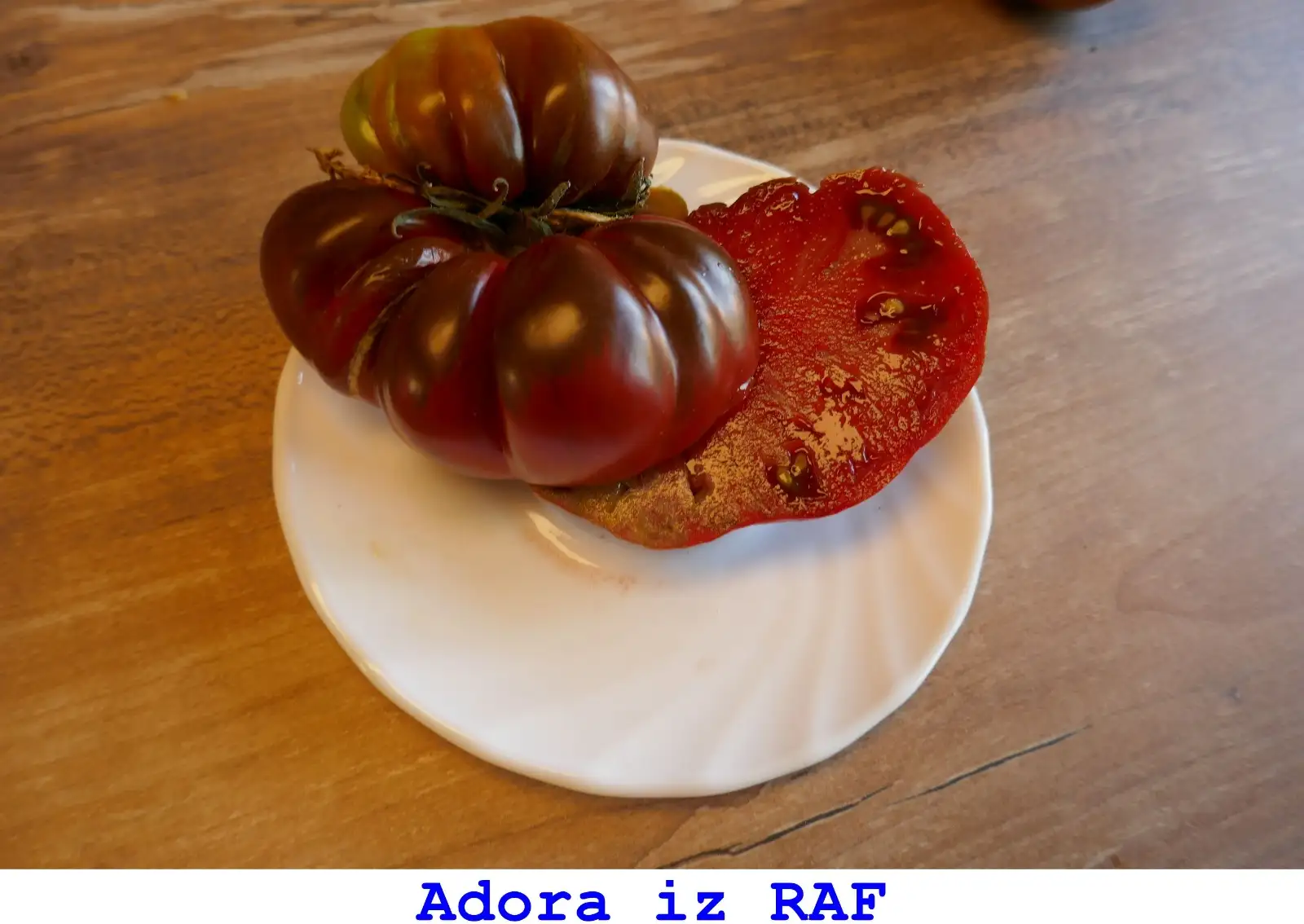 6 Adora Iz RAF Grün-rote Fleisch-tomate aus RAF und Marmande, E,indetrminiert, bis 400 Gr., normales Laub, sehr geschmackvoll Anbau 2023 ©G-TOmaten