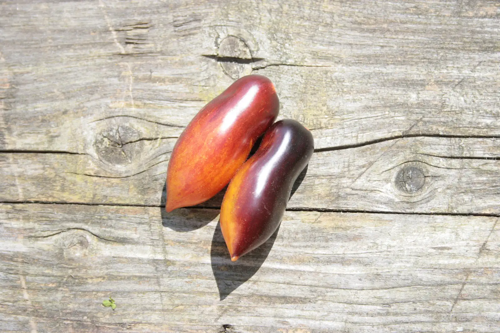 Beschreibung: Antho Pink Panther ist eine außergewöhnliche, auffällige Tomatensorte mit länglichen Früchten. Die Schale zeigt ein zartes Rosa mit violetten Anthocyan-Schultern, die besonders bei Sonneneinstrahlung intensiv leuchten. Das Fruchtfleisch ist saftig, fleischig und aromatisch mit einem ausgewogenen süß-fruchtigen Geschmack und milder Säure.