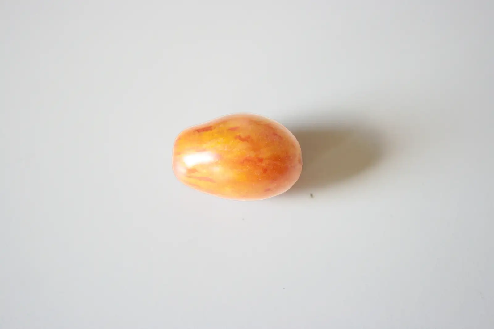 Beschreibung: Artisan Blush Tiger ist eine auffällige, mehrfarbige Cocktail‑ bzw. Flaschentomate aus der Artisan‑Familie, die in den USA gezüchtet wurde. Die Früchte sind etwa 4 – 7 cm lang, wiegen rund 20 – 30 g und haben eine gelb‑orange Grundfarbe mit rosa‑ bis pinkfarbenen Streifen oder Marmorierung. Sie ist saftig und fruchtig-süß im Geschmack. Die kräftigen, normalblättrigen Pflanzen wachsen indeterminiert, sind ertragreich und tragen über einen langen Zeitraum. Ideal für den Frischverzehr, Salate oder als Snack direkt vom Strauch.