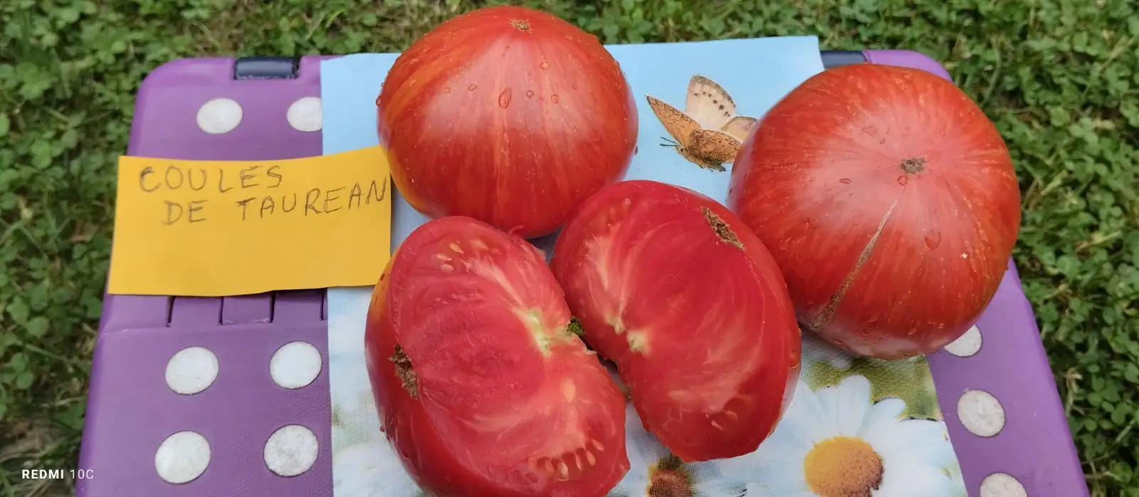 Rote Tomate, ausgewogener, leicht würziger Geschmack. Ich habe diese Samen unter diesem Namen gekauft, aber es scheint mir, dass es sich nicht um die alte Sorte aus Frankreich handelt, sondern um eine andere, oder dass sie bestäubt wurde.