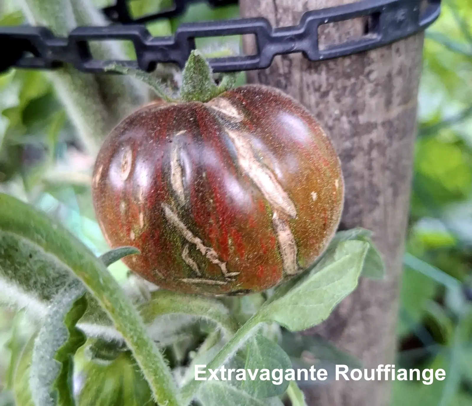 rot-grün gestreift, rund, behaarte Früchte und Blätter, 40-100 g, England Anbau/Samen: 2025