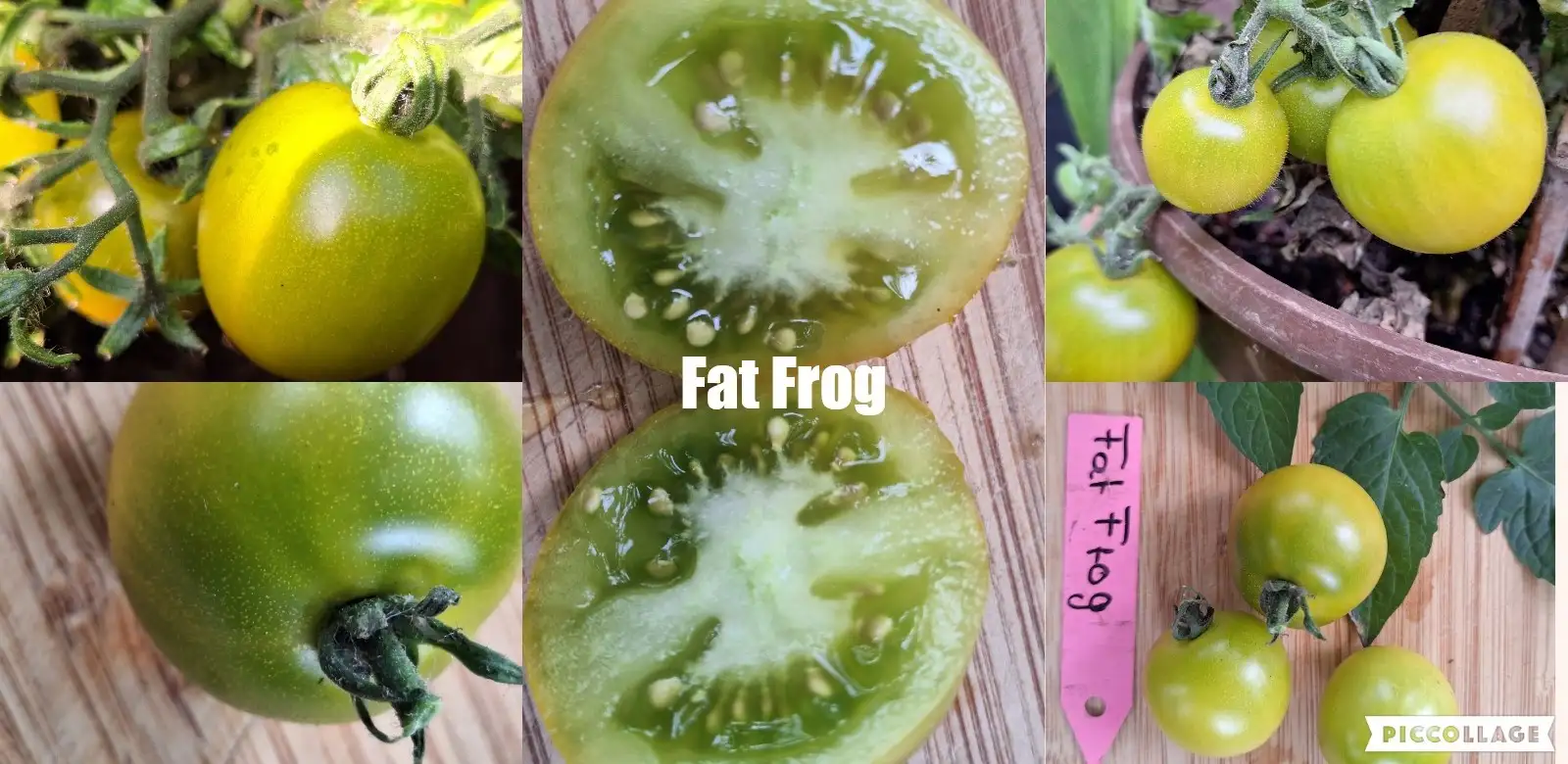 Tomaten Sorte: Fat Frog Grüne Cocktailtomate, sehr saftig, intensiver Geschmack. Sehr kompakter, dichter Wuchs, schönes, dunkelgrünes Laub. Wuchshöhe um 40cm. Herkunftsland: Florida/USA