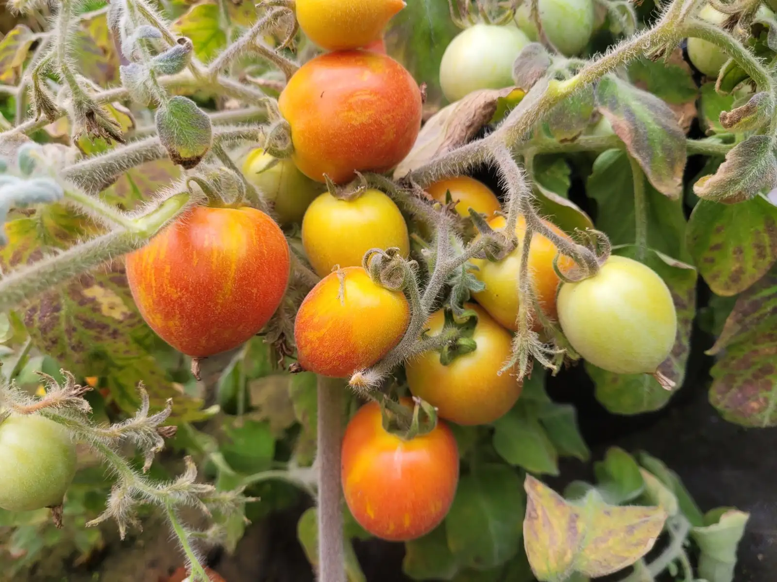 🍅 Tomate 'Fuzzy Wuzzy' – Die samtige Rarität mit Wildtomaten-Charme Die Fuzzy Wuzzy ist eine echte Besonderheit unter den Tomaten: Ihre Früchte sind nicht nur hübsch zweifarbig – leuchtend rot mit gelb-orangefarbenen Streifen – sondern auch leicht behaart, was ihnen eine samtige, fast pfirsichartige Oberfläche verleiht. Diese ungewöhnliche Eigenschaft macht sie zu einer der wenigen „flauschigen“ Tomatensorten – und zu einem echten Liebhaberstück! Die kleinen, ovalen Früchte erreichen etwa 3–5 cm Länge und überzeugen mit einem mild-fruchtigen, leicht süßlichen Geschmack – perfekt zum Naschen, für bunte Salate oder als dekorativer Snack. Die Pflanze bleibt kompakt und buschig (etwa 40–60 cm hoch) und eignet sich ideal für den Topfanbau auf Balkon oder Terrasse. Sie ist eine determinierte Sorte, das heißt: sie wächst begrenzt und muss nicht ausgegeizt werden – sehr pflegeleicht! Durch das silbrig-grüne, leicht filzige Laub wirkt sie fast wie eine Wildtomate. Fuzzy Wuzzy ist nicht nur eine geschmackvolle Tomate, sondern auch eine Zierpflanze mit Charme – ideal für kleine Gärten oder als Hingucker im Kübel.