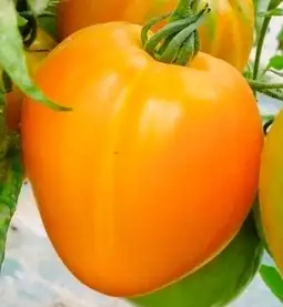 Fleischige große orange herzförmige süße Sorte. Schnittfest, aber nicht hart. Extrem Samenarm. Bis ca. 1.80 m hoch. 1 bis 2 Stämme belassen.