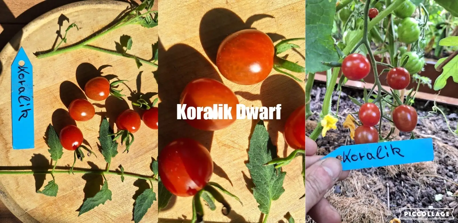 Sorte: Koralik ( Dwarf ) Mini Wildtomate, rot, aromatisch - süßer geschmack, saftig frisch, früh reif. Sehr robuste Pflanze, auch an ungeschützten Standorten werden die Tomaten reif. Pflegeleicht, Buschtomate, robust,Kompakter Wuchs, um 130cm hoch. Herkunft: Osteuropa