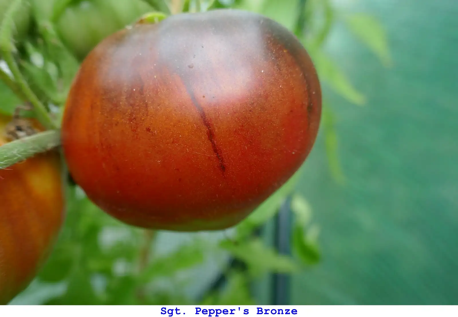384 Sgt. Pepper's Bronze Rot-bronze Fleischtomate Lettland, bis 1,7 m, Frucht 200-400 Gr, normales Laub Anbau 2023 ©G-TOmaten