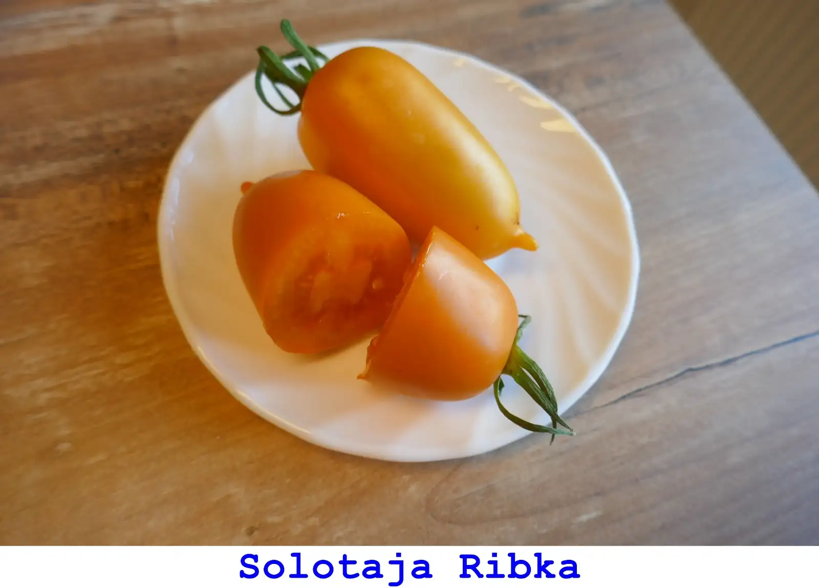 393 Solotaja Ribka (Goldfisch) Flaschentomate gelborange, Russland, bis 1,8m, Frucht bis 200 Gramm,normales Laub,robust, lange haltbar, sehr ertragreich Anbau 2025 ©G-TOmaten