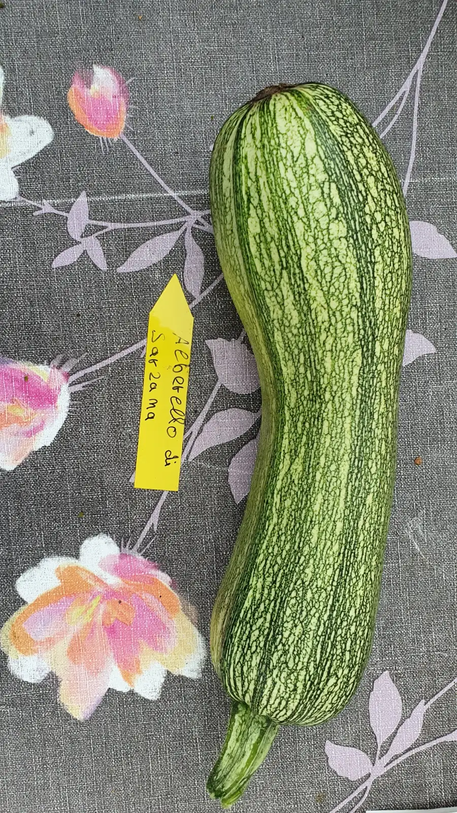 Sorte: Alberello di Sarzana ( Samenfest ) Es ist eine traditionelle Sorte, die seit sehr vielen Jahren und Jahrzehnten in Italien ( Sarzana ) angebaut wird. Die Pflanzen bilden hellgrüne Früchte mit Aufhellungen in Form von Marmorierungen. Wuchshöhe um 40 cm