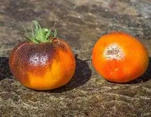 (= Blue Clementine) – große Obsttomate von 40 bis 100 g. Orange, oben kräftig violett. Orangefarbenes Fruchtfleisch, rot marmoriert, saftig und mit Zitrusaroma.