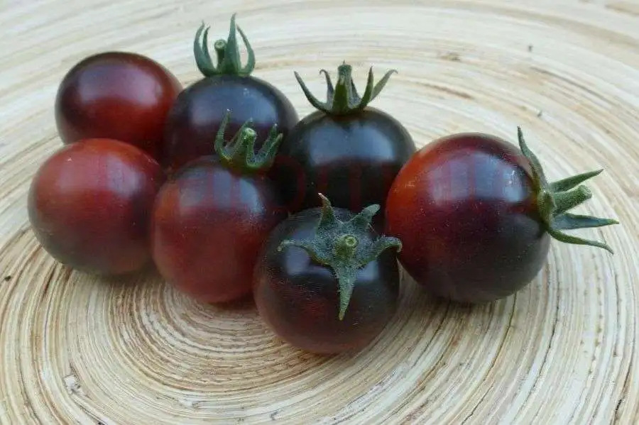 Dunkelblau-violett reifende Cocktailtomate mit würzig-fruchtigem Aroma. Die Pflanzen werden bis 180 cm groß, und die Tomaten wachsen an Rispen. An den der Sonne ausgesetzten Stellen werden die Früchte dunkelviolett, der Rest der Tomaten reift von grün zu rot. Züchter: Tom Wagner.