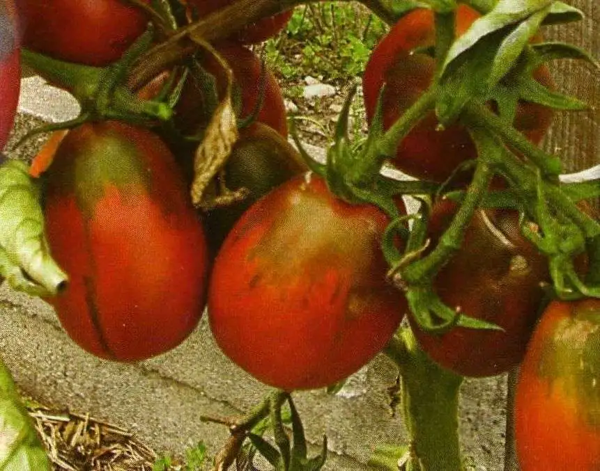 (= Prune Noire) – braunrote Marktomate. Diese Sorte ist relativ widerstandsfähig gegen Braunfäule. Sie hat keine schwarzen, sondern dunkle, braunrot-olivfarbene Früchte, die sich bei Hitze stärker und dunkler färben. Die mittelgroße Frucht ist länglich (tonnenförmig), zwei- bis dreikammrig und süß. Sehr feste Fruchthaut, dicke Fruchtwand, lange lagerbar. Viel Trockensubstanz (Marktomate), daher auch für Toasts und Pizza geeignet. Etwa 35 bis 40 g schwer. Innen smaragd- bis braunolivgrün, immer mit dunkler (oliver) Kappe. Platzt nicht auf, sondern hat nur manchmal Risse am Stielansatz. Trägt üppig, lang und sicher. Gesunde, kräftig wachsende, mittelhohe bis hohe Stabtomate. Reift ab Ende Juli. Eventuell identisch mit Braunes Ei.