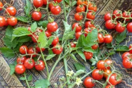 (Lycopersicon pimpinellifolium) ‒ mexikanische Wildform. Glänzende, kleine, rote Früchte (gerade 2 cm) von herrlich süßem Geschmack. Sehr stabil gegen Braunfäule. Eine stämmige Stabtomate von extrem starkem Wachstum ‒ kann leicht 3 Meter hoch werden. Sehr kräftiges Laub, aus dem oft ganze Pflanzen entspringen. Wächst in mageren Böden aber eher drahtig, bringt jedoch den gleichen Ertrag wie „fette“ Pflanzen. Bohnenstange erforderlich.