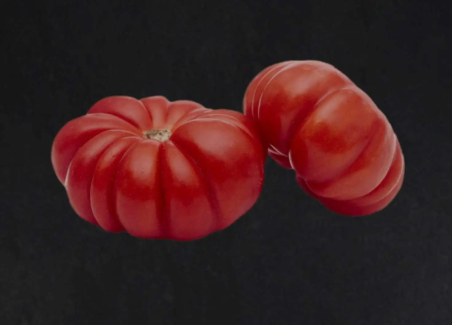 Dicke, stark gerippte/gezackte rote Tomate. Mexikanische Sorte, fruchtig, süßes Aroma, enthält sehr wenige Kerne.