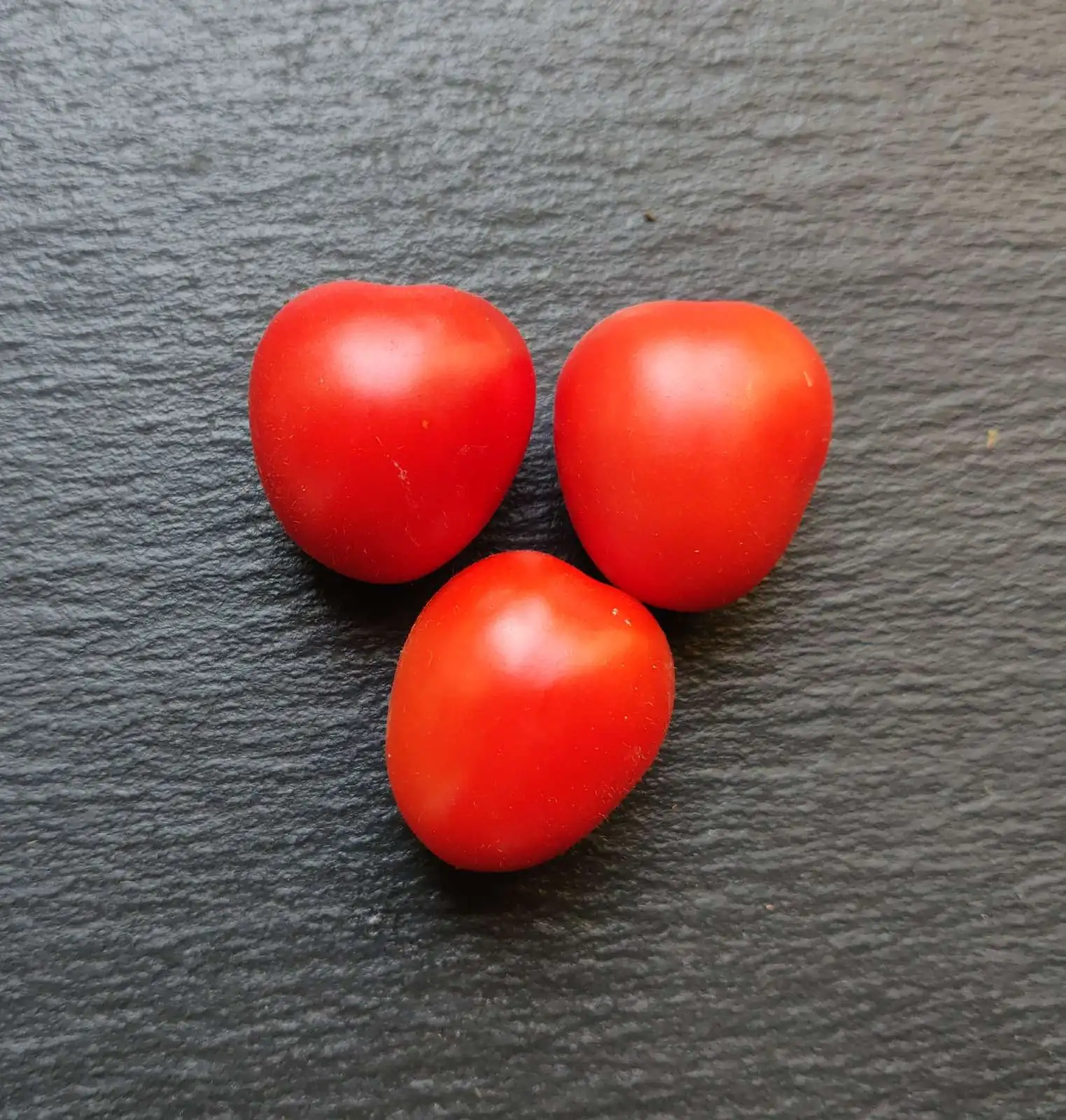 Glänzend rote Kirschtomate (hochrund, 2,5 bis 3,5 cm) mit sehr gutem Geschmack und üppigen Trauben mit bis zu 25 Früchten. Sorte, bei der im Herbst die ganzen Trauben geerntet und dann aufgehängt eingelagert werden können.